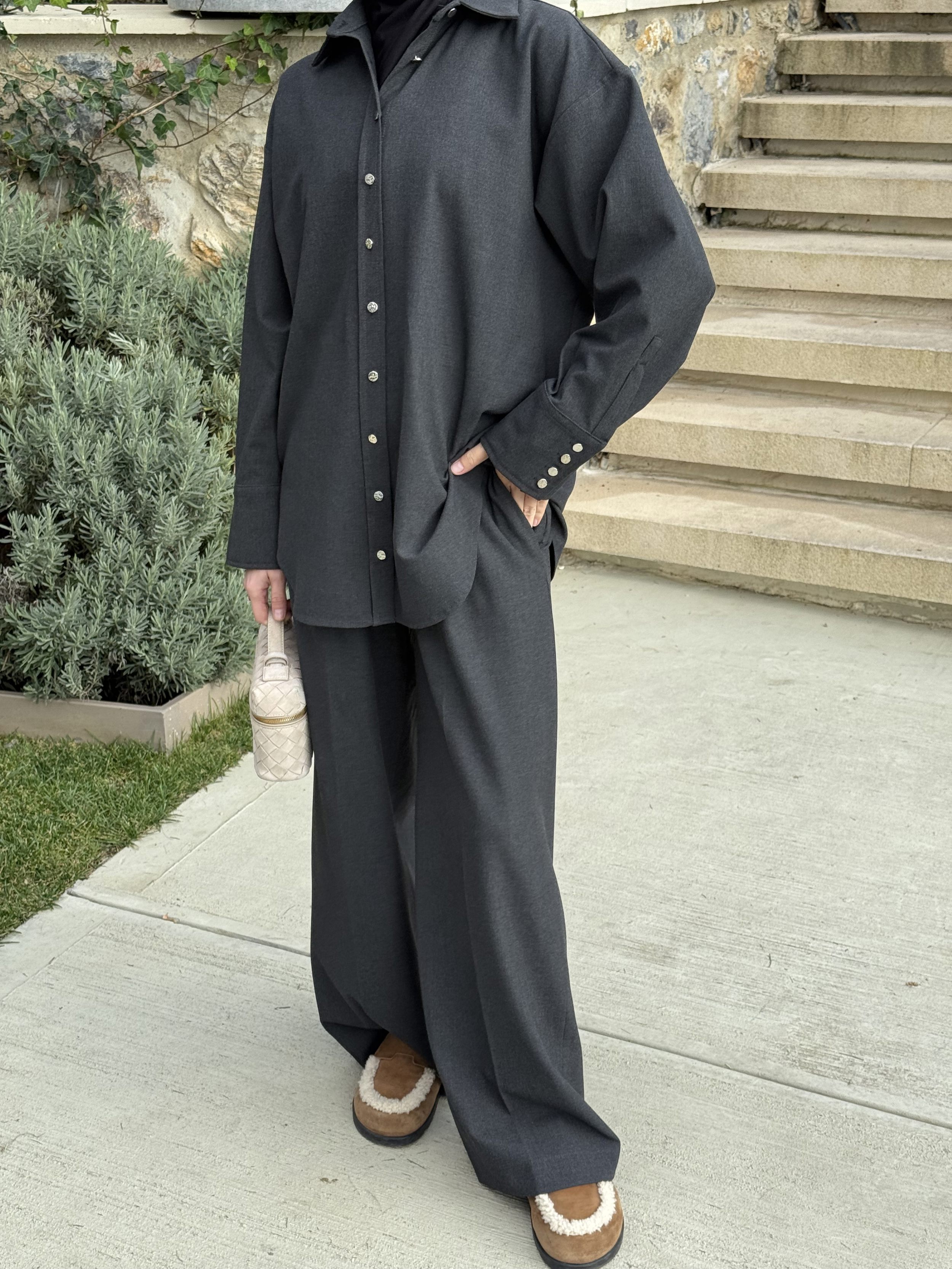 pantolon bel lastikli ve yandan fermuarlıdır